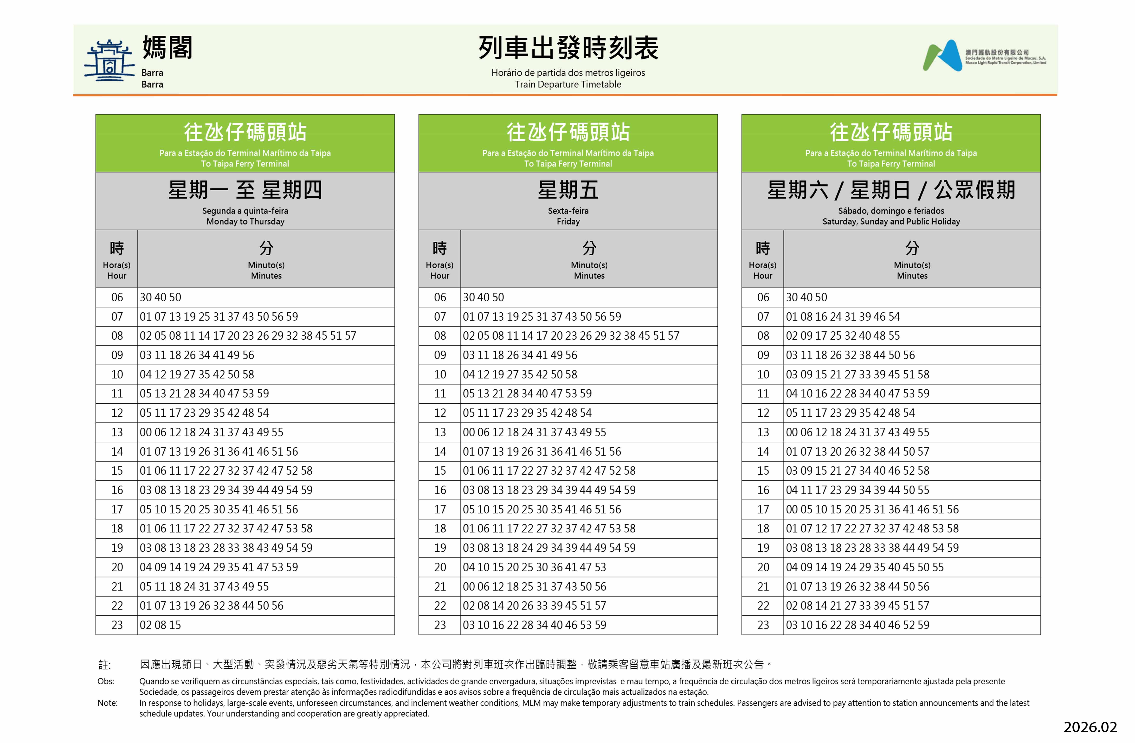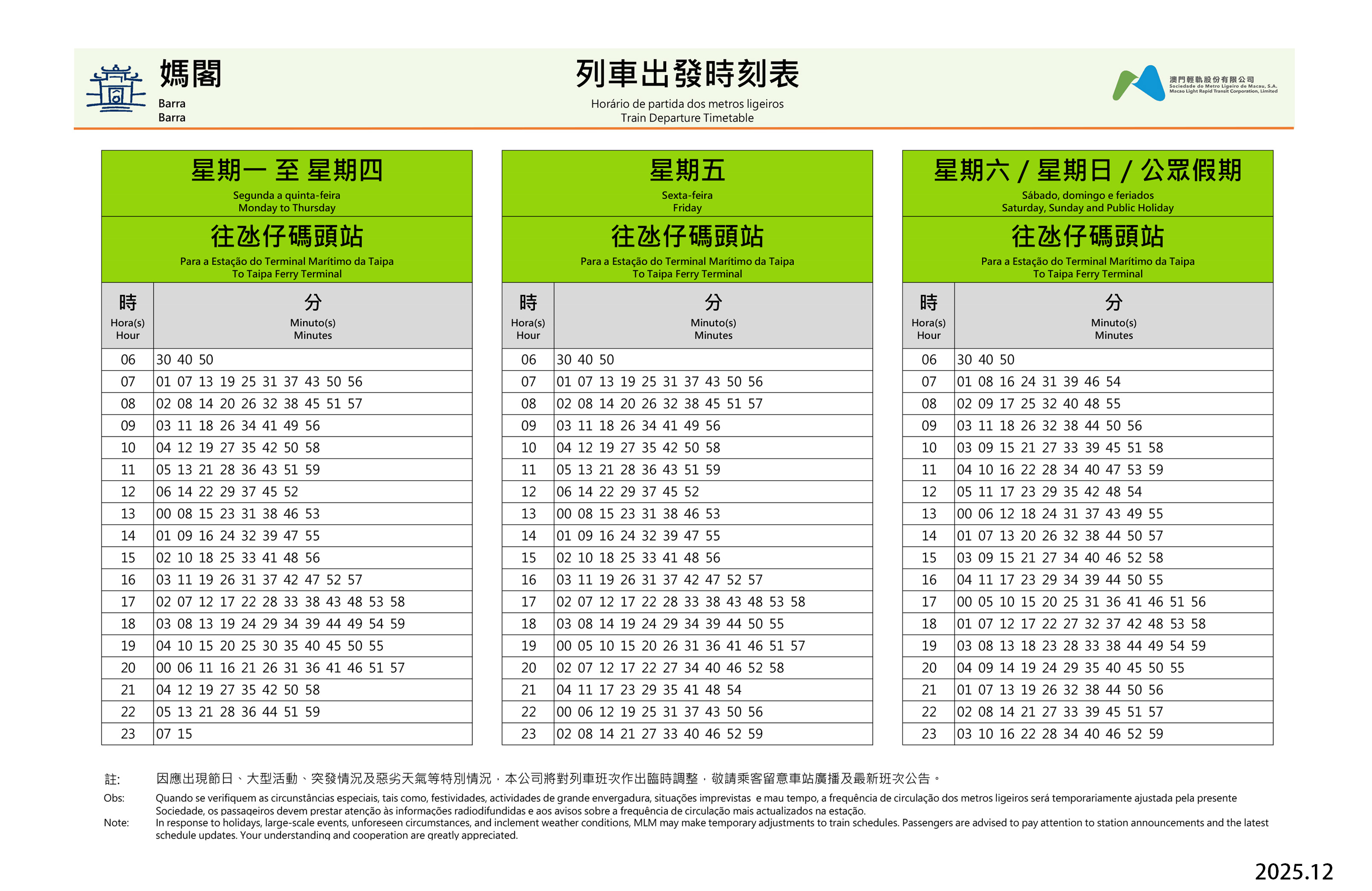 媽閣站與媽閣交通樞紐毗鄰而建,為澳門半島西南面的重要交通集散地,透過整合輕軌與巴士等各項公共交通服務,便利居民和旅客出行。